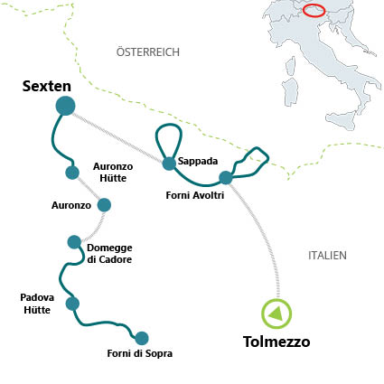 Tag 6: Auronzo di Cadore - Rifugio Padova Hütte