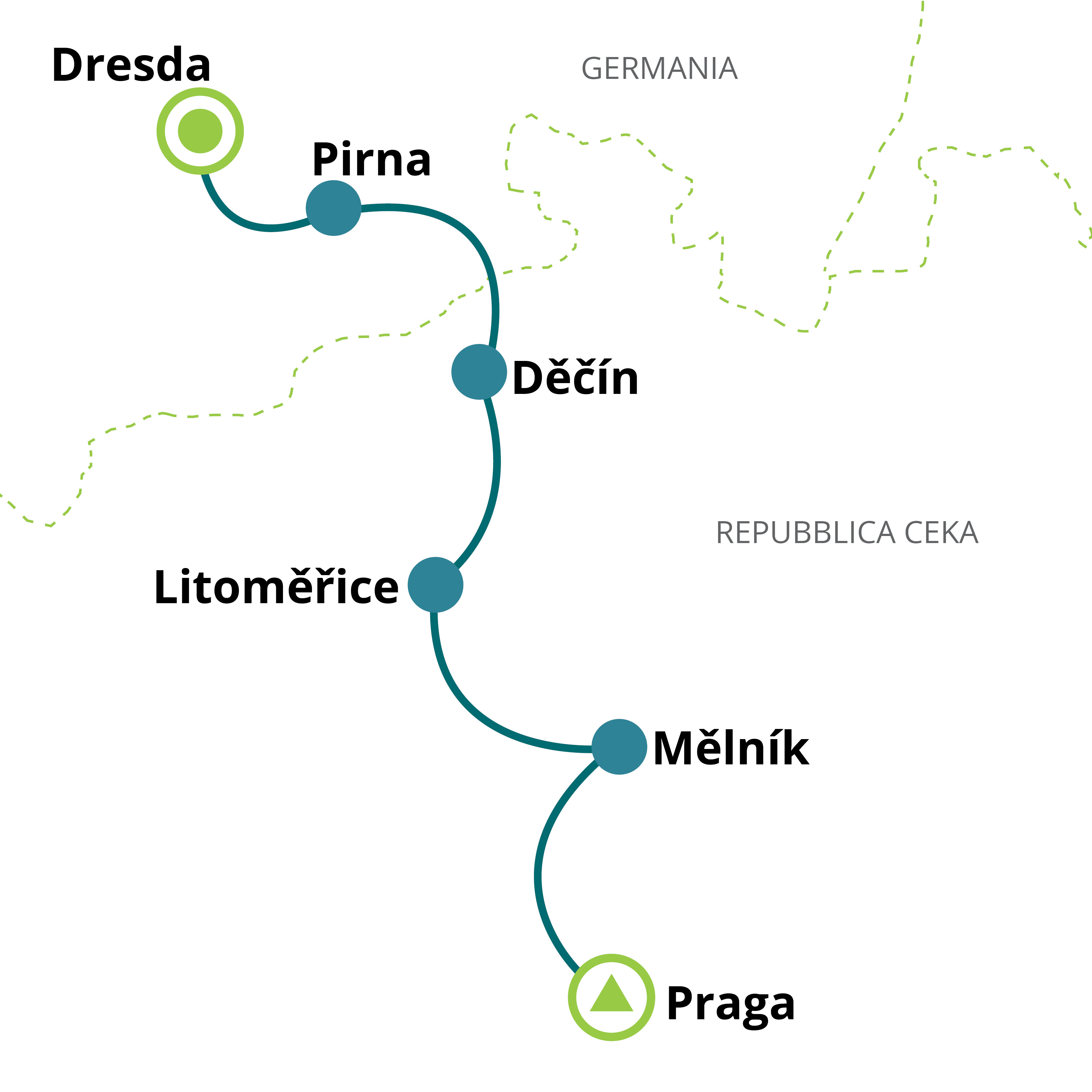 Percorso medio-facile. Nella tappa tra Praga a Melnik incontrerete alcune salite; per il resto il percorso è in gran parte piano e segue la pista ciclabile dell’Elba (la “Elberadweg”). Alcuni tratti su sabbia battuta.