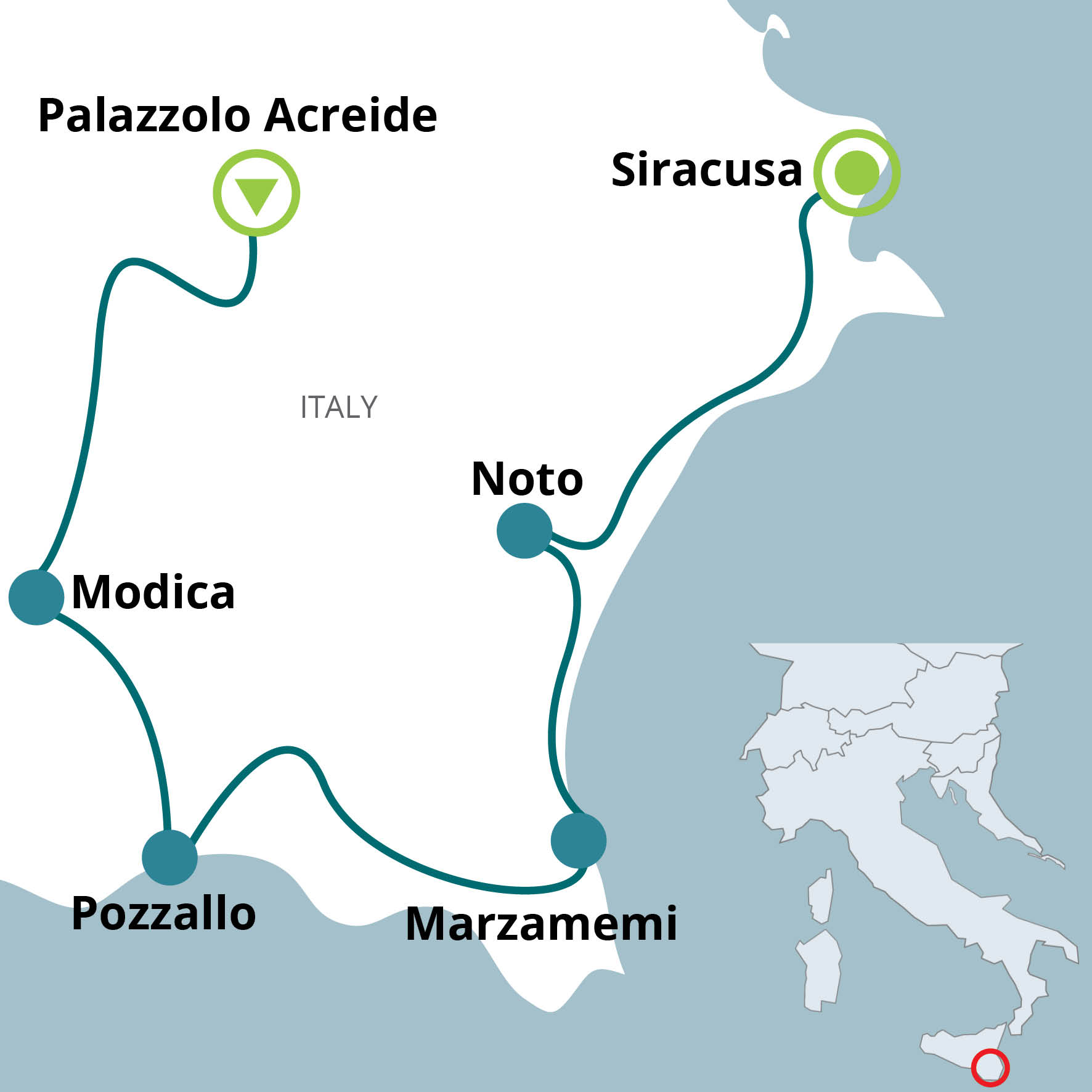 Un tour in bici piuttosto vario che assecondando i vostri ritmi ed interessi vi accompagnerà alla entusiasmante scoperta della Sicilia Orientale. Attraverserete la Val di Noto, ricostruita in pieno periodo barocco dopo il terribile terremo del 1693 e dal 2003 dichiarata dall’Unesco patrimonio dell’umanità. Il nostro tour vi farà scoprire le città barocche di Palazzolo Acreide, Ragusa Ibla, Modica, Scicli e non da ultimo Noto, la più importante città barocca della Sicilia per condurvi infine a Siracusa, antica colonia Greca.