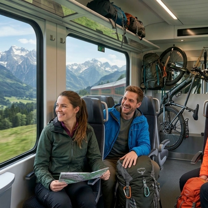 Die Zugreise ist der sanfteste Einstieg in deinen Urlaub: einsteigen, Platz finden, vielleicht einen Kaffee holen – und schon rollt der Zug in Richtung Urlaub und Erlebnis. Kein Stau, kein Stress, kein Navigieren.