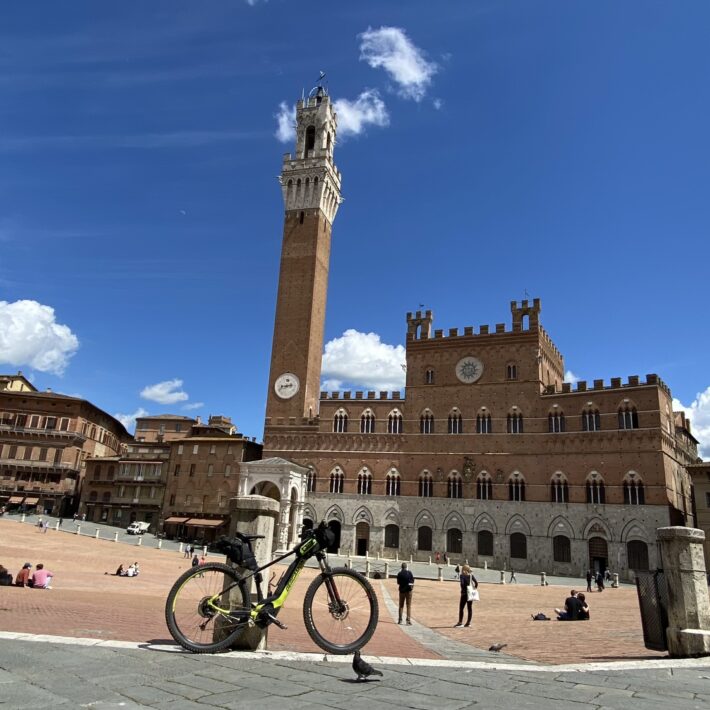 Die heutige Etappe führt über alle Hügel des Chianti Classico, durch die Natur, umgeben von endlosen Reihen von Weinstöcken, vorbei an kleinen Dörfern, Schlössern und Pfarrkirchen, stille Zeugen einer alten, glorreichen Vergangenheit. Wir werden auch auf den weißen Straßen fahren, die durch die Heldentaten der Radfahrer von einst berühmt geworden sind und die heute von Tausenden von Enthusiasten befahren werden, die an der Eroica, der weltweiten Veranstaltung für historische Fahrräder, teilnehmen. Schließlich kommen wir in Siena an, der Stadt des Palio.