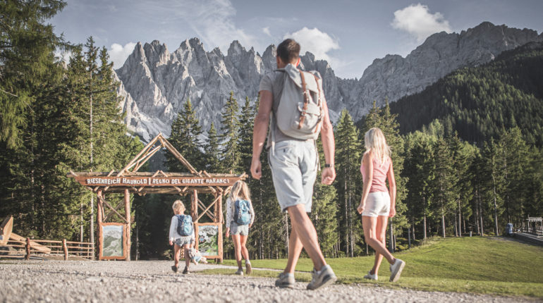 Von der Sextnerstraße führt ein bequemer Wanderweg über das ehemalige Wildbad von Innichen und die Kapelle zur Riese Haunold Hütte. Für die Kleinen gibt es einen großen Kinderspielplatz mit Tubingbahn und für Erwachseneeine gemütliche Relaxzone. Es erwartet Sie die Riesenwelt Haunold, die Kinder und Erwachsene in die Welt des Riesen Haunold entführt. Die Abfahrt vom Haunold erfolgt mit der längste Sommerrodelbahn Südtirols - dem Fun Bob. Groß und Klein sausen auf der Aluminiumschiene ins Tal. Als Gefährt dient ein Bob, bei dem man die Geschwindigkeit selbst reguliert. Erwachsene haben dabei mindestens gleich viel Spaß wie Kinder.