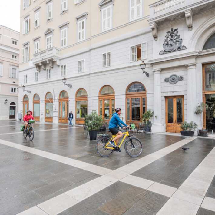 Ihre Reise beginnt dort, wo auch jene der Parenzana-Eisenbahn begonnen hat: am Bahnhof von Triest. Der im Jahr 1906 erbaute Bahnhof spiegelt die typische Architektur in der Zeit der Österreich-Ungarischen Monarchie wieder. Sie verlassen die Stadt Triest, passieren die Grenze, fahren vorbei an Wäldern und Feldern. Am Ende der Trasse befindet sich eine lange Abfahrt mit einer wunderschönen Aussicht auf die Kurstadt Piran.