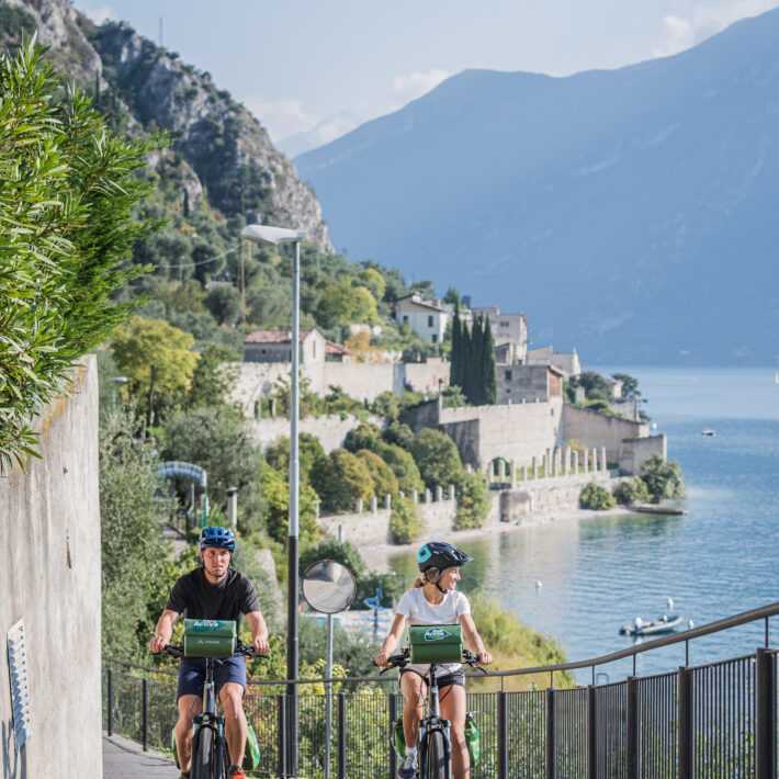 Die Strecke beginnt in Vesio, führt über den Passo Nota und folgt dann der Straße, die den See entlang verläuft. Von hier aus geht es weiter auf dem malerischen Panoramawanderweg Ponale Giacomo Cis, der bis nach Riva del Garda führt. Ab Riva setzt sich der Weg entlang des Seeufers fort und bietet außergewöhnliche Landschaften und atemberaubende Ausblicke, bis Malcesine erreicht wird, mit seinem imposanten mittelalterlichen Schloss und dem malerischen historischen Zentrum, das sich über das kristallklare Wasser des Sees erstreckt.