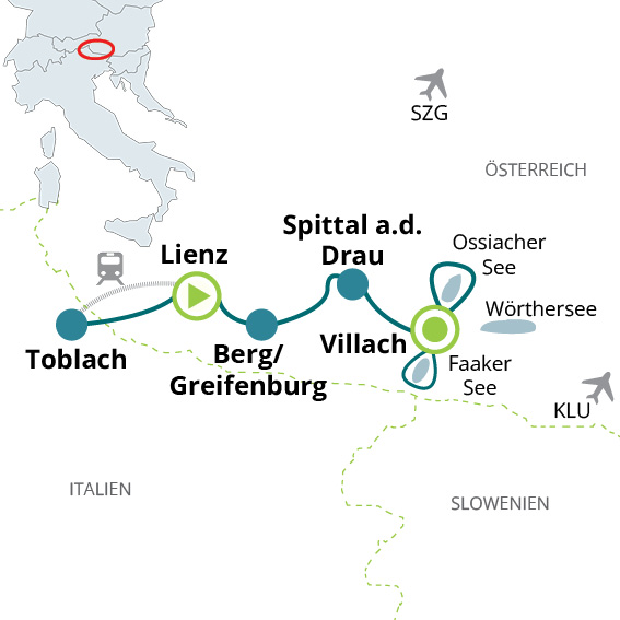 Alternative: gute Zugverbindungen von Villach nach Lienz. Fahrpläne auf www.oebb.at, www.deutschebahn.de.