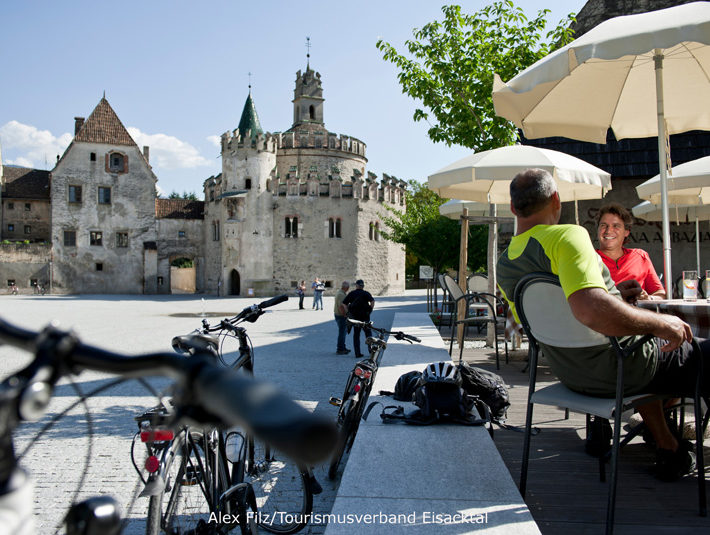 Der Eisacktal-Radweg von Brixen nach Bozen entlang des Flusses Eisack gibt Ihnen heute die Richtung vor. Ausgangspunkt ist die Bischofsstadt Brixen, welche Sie gegen Süden verlassen. Schon bald lädt Sie das malerische Städtchen Klausen mit seinen engen Gassen und Häusern zu einer ersten Besichtigung ein. Schlussendlich erwartet Sie Südtirols Landeshauptstadt Bozen, die Stadt in der sich zwei Kulturen begegnen.