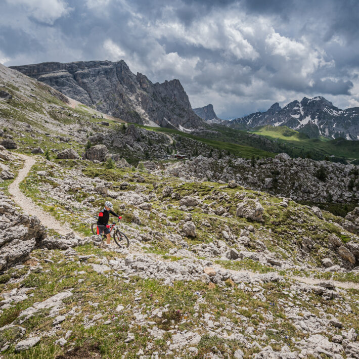 Diese Rundtour kombiniert erlebnisreiche MTB-Passagen mit spektakulären Panoramastrecken – ideal für alle, die Bewegung und Abenteuer in den Dolomiten spüren möchten.