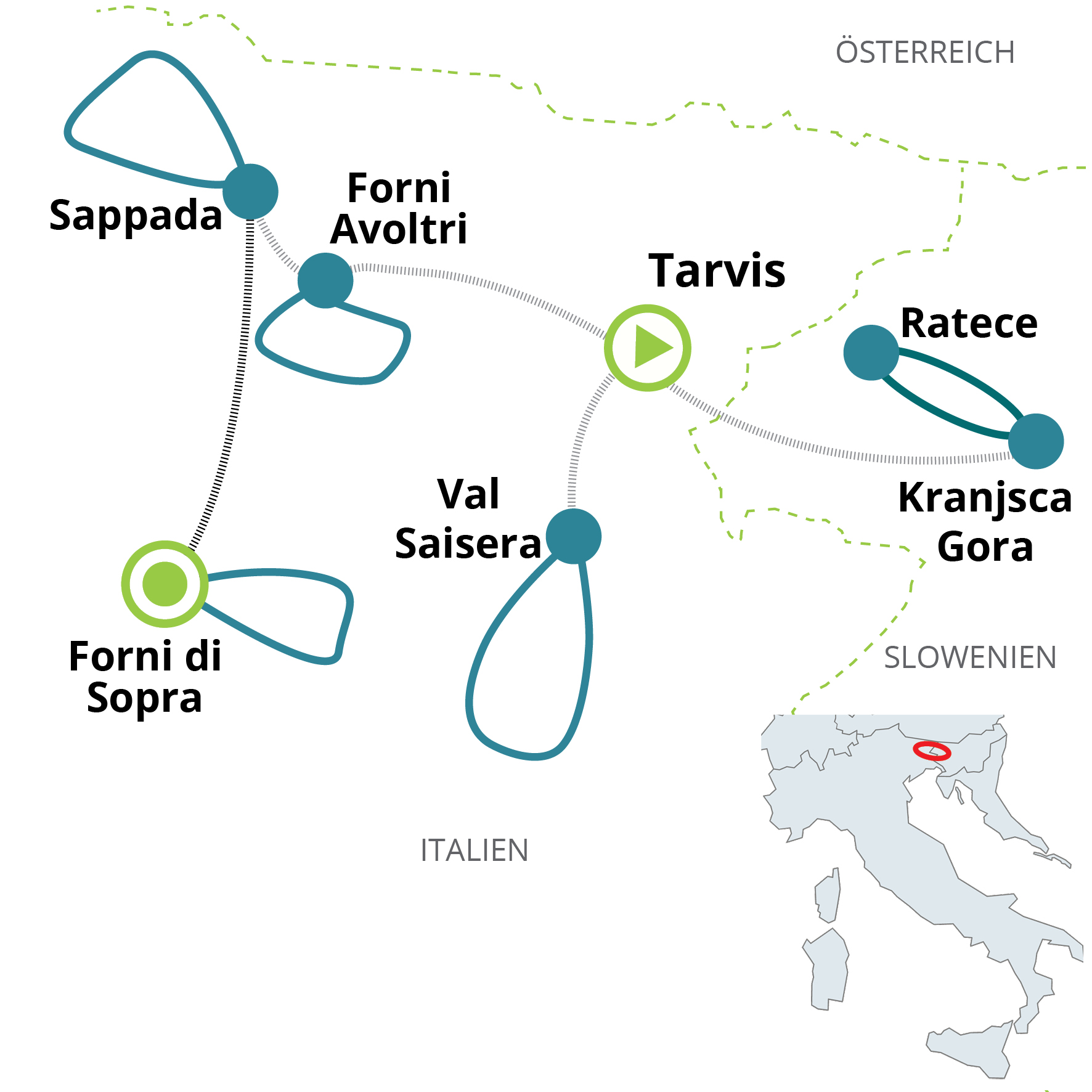 Transfer Tarvis - Val Saisera, Kranjska Gora, Bladen, Forni di Sopra