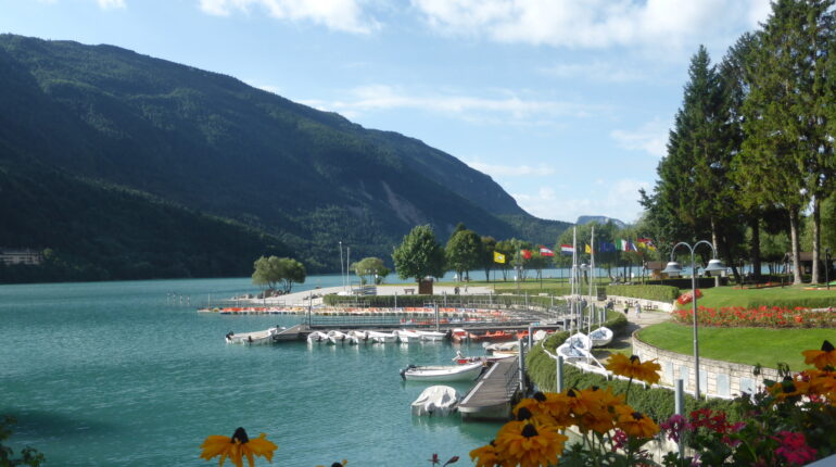 During a short transfer you can admire the impressive landscape of the Val di Non. Afterwards, you hike through lonely forests up to the panoramic square at the worth seeing little church San Tommaso. Continue into the Priori nature park area and across the wetland of a karst lake to Andalo and on to Molveno, situated at the foot of the Brenta Dolomites and on the sparkling turquoise-blue Alpine lake of the same name.