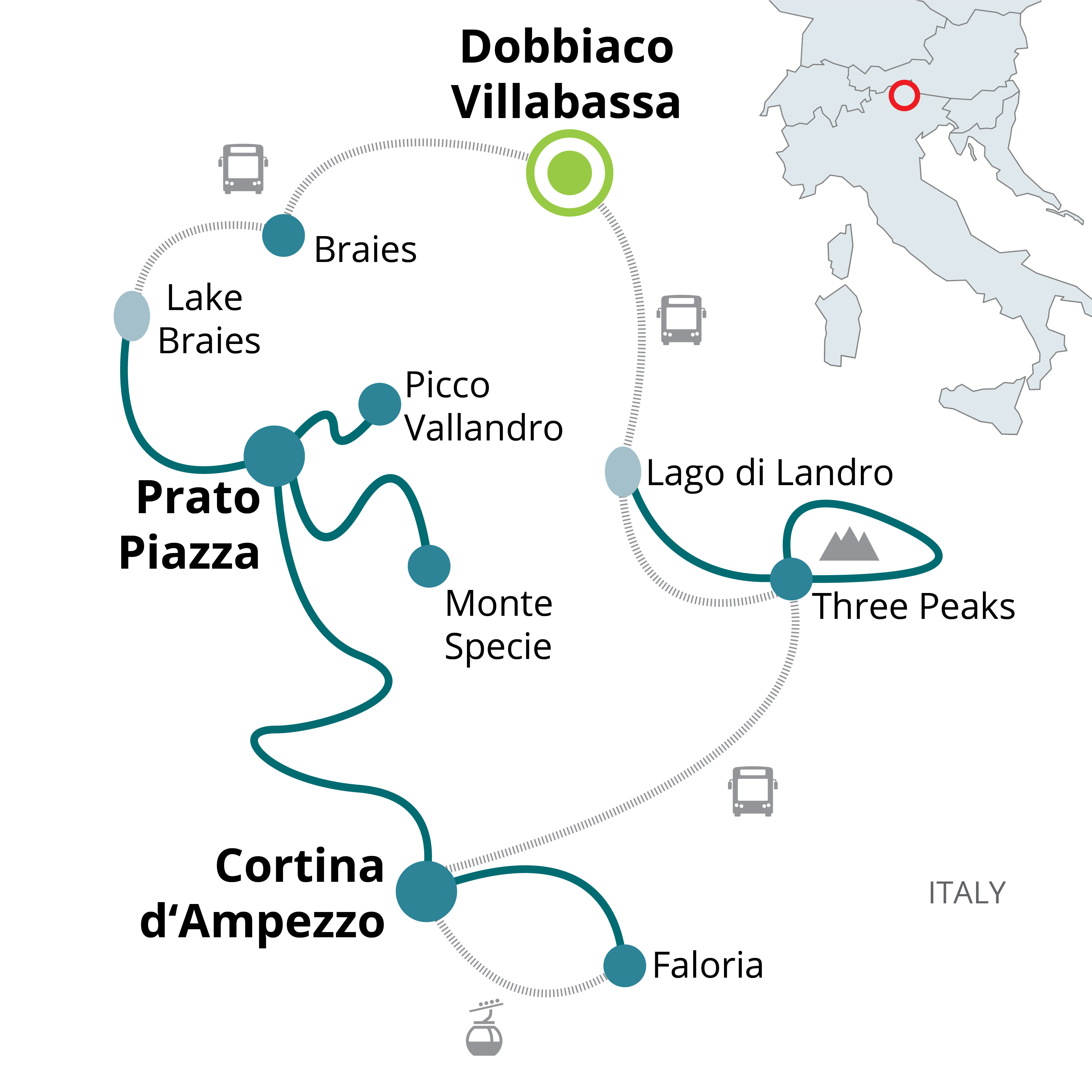 You hike through the high plateau of the Plätzwiese and descend through the Knappenfußtal to Cimabanche – the frontier between South Tyrol and Belluno. Here are two possibilities to continue: either the direct way using the public transport to Cortina d’Ampezzo or the longer variant to Ospitale and Passo Tre Croci. Possibility to shorten the route with the cable car Son Forca (not incl.).