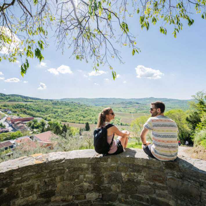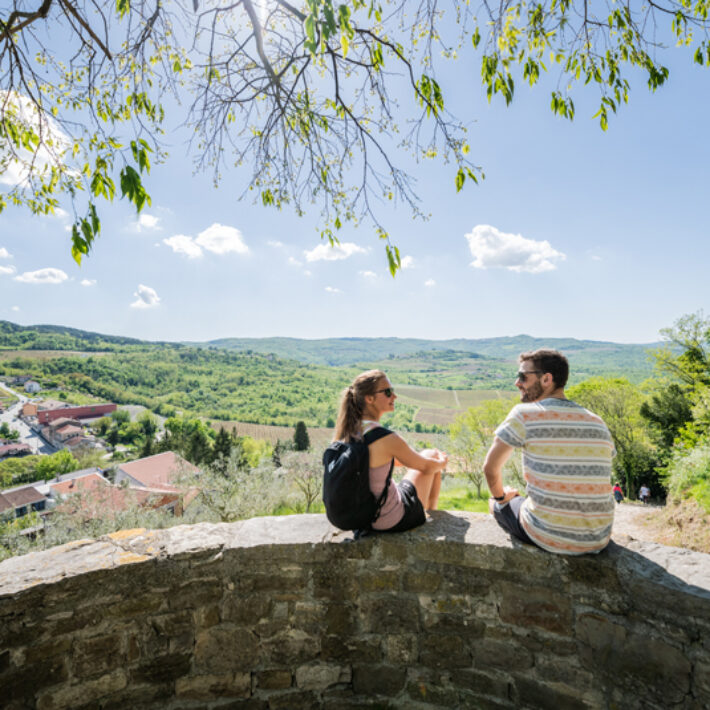 Starting from Momjan, you walk amidst green fields, olive groves and vineyards to Brtonigla. Brtonigla combines typical rural Istrian cuisine with Mediterranean sea cuisine. Worth seeing here are sacred buildings such as the parish church of St. Zenon. Worth a visit is also the Mramornica cave.