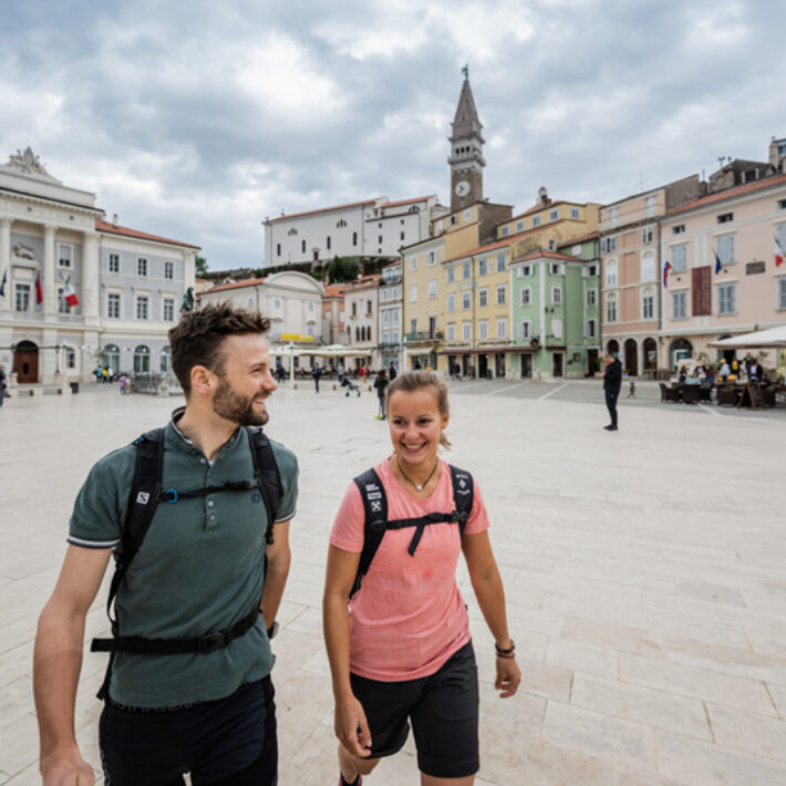 In the morning you take the ferry from Trieste to Muggia. The stage begins in Muggia, the only Istrian town in Italy. You hike inland from the sea. After crossing the border with Slovenia, you have a beautiful view of the Muggia valley and the Julian Alps. You descend gently along the Slovenian Alpine Trail. Here the landscape opens up above the Gulf of Koper amidst wooded areas and vineyards. You will walk part of the stage on the Parenzana, the former Istrian narrow-gauge railway that connected Trieste and Poreč until 1935. End the day in the car-free old town of Koper with all its magnificent buildings. It is possible to shorten the route by bus (ticket not included).
