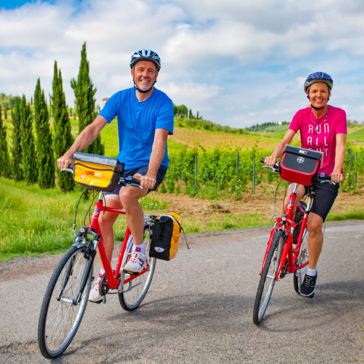 Your day begins with a transfer to Casciana Terme. From there, you’ll pedal through vineyards and gently rolling hills on picturesque routes leading to the town of San Gimignano. Along the way, soak up the sweeping views of Tuscany’s timeless countryside, just as they were captured by the great masters. San Gimignano welcomes you with its iconic skyline of medieval towers before a comfortable transfer brings you back to your hotel.