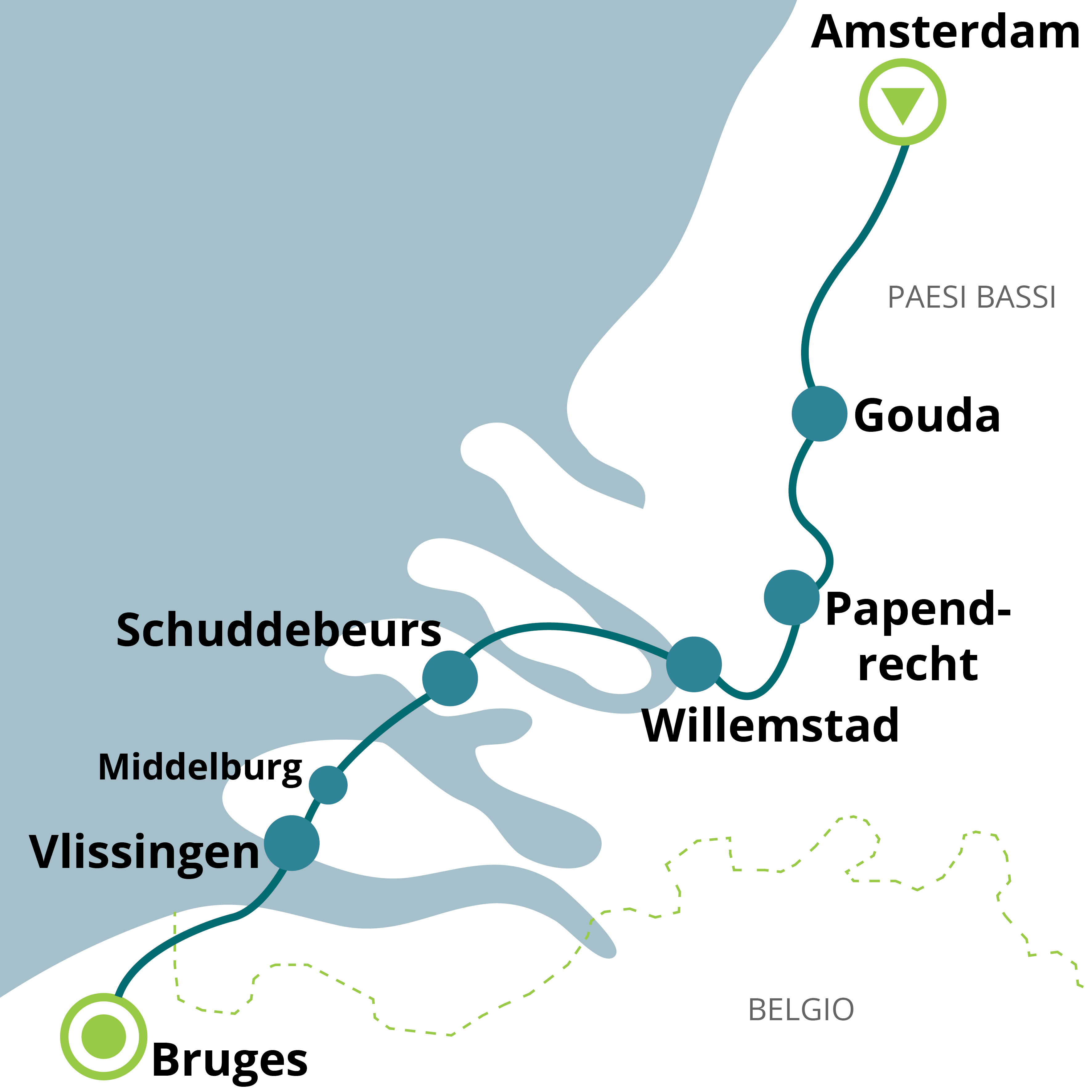 Il percorso può essere seguito anche in direzione inversa, da Bruges ad Amsterdam.