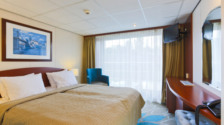 Tutte le 74 cabine sono cabine esterne adatte a 2 persone, di circa 14 m² e arredate in modo confortevole con letti d'albergo. Sono tutte dotate di doccia/WC (alcune con vasca da bagno), asciugacapelli, TV, cassaforte, telefono interno e aria condizionata regolabile autonomamente. Un ascensore collega il ponte centrale con la hall e il ristorante. Il ponte superiore e il ponte sole sono accessibili con un montascale. Il ponte principale è raggiungibile solo tramite le scale.