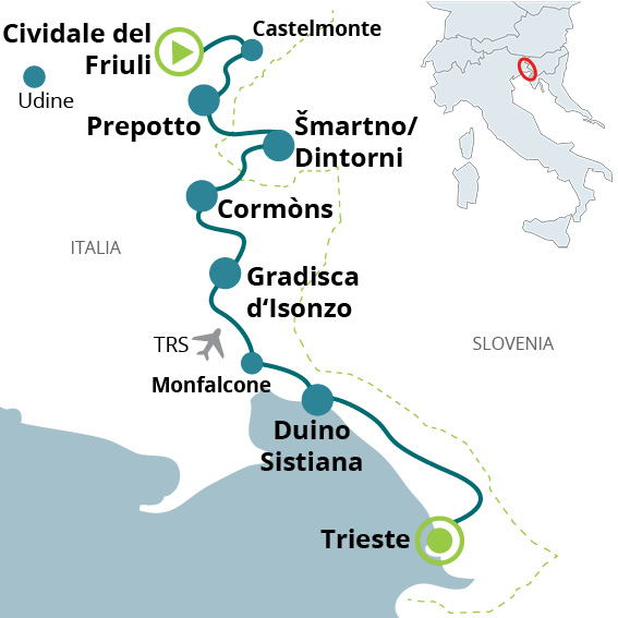 Ogni sabato offriamo un transfer in bus navetta da Trieste a Cividale del Friuli. (prenotazione e pagamento al momento della prenotazione del viaggio).