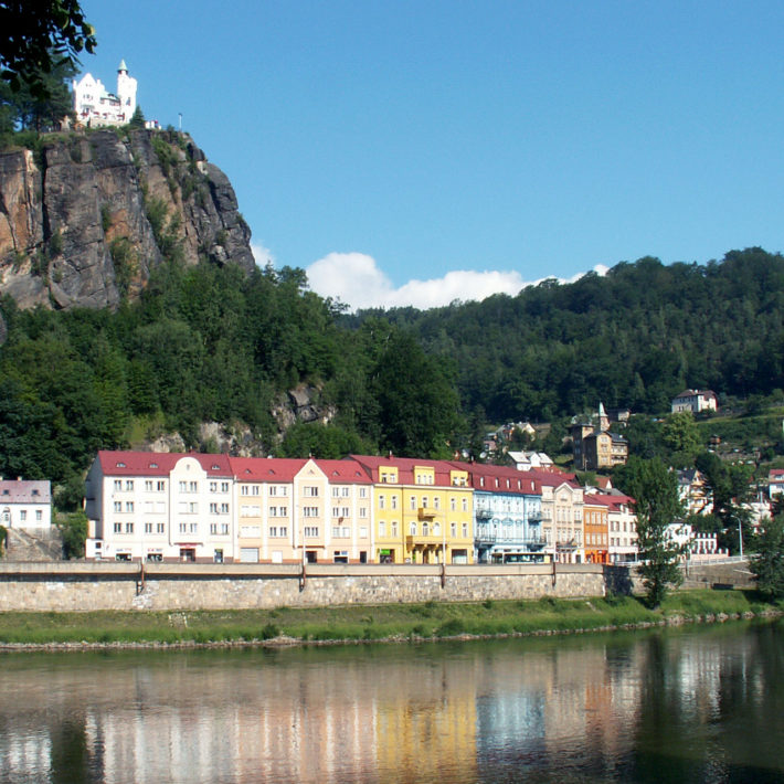 Dopo aver percorso i primi 20 km in bici vi consigliamo una prima pausa e una visita alla città di Usti nad Labem. Strada facendo potrete ammirare le rovine del castello Schreckenstein in alto su una roccia a 100 metri di altezza sulla sponda destra del fiume. Nel pomeriggio raggiungerete Decin.