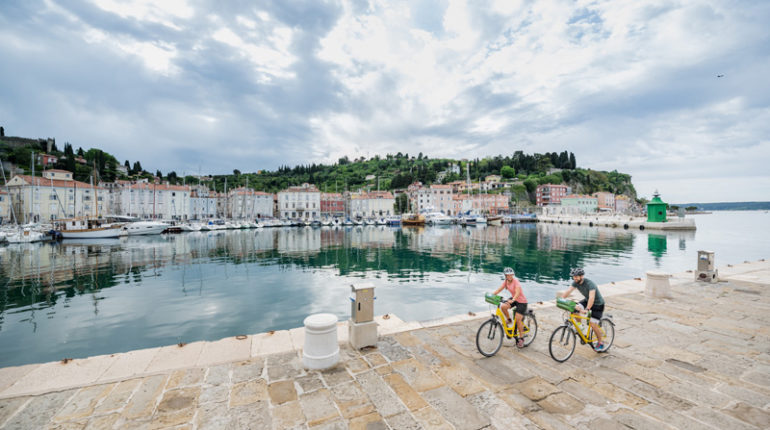 La prima tappa in bici vi porterà, dopo pochi chilometri, oltre il confine italiano; in Slovenia piacevoli piste ciclabili vi condurranno attraverso le note località di Capodistria e Isola d‘Istria per proseguire poi verso Pirano/Piran e Portorose/Portorôz, località della riviera slovena famosa per i centri termali. Se preferite il percorso più breve potete prendere il traghetto da Trieste a Muggia (biglietto non incluso) mentre la variante più lunga corre all‘interno attraverso la Val Rosandra. Da Muggia proseguirete lungo la costa accompagnati dai riflessi e dal profumo del mare.