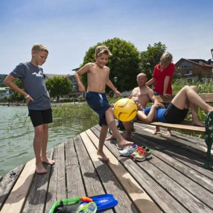 Ci sono tre lidi (ingresso incluso) che vi aspettano. Potete noleggiare un gommone, gettarvi dagli scivoli o giocare nel parco avventura. In alternativa, potete fare un giro in bicicletta lungo il lago Obertrumer, senza rinunciare a un bel tuffo anche qui.