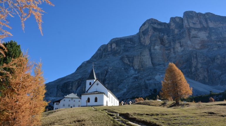 Piccola chiesa ai piedi del Kreuzkofel. La chiesa è ancora oggi meta di numerose petizioni e pellegrinaggi.