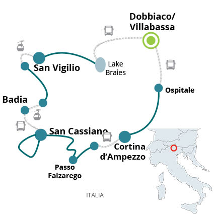 Opzione eco-friendly in treno: stazione di Dobbiaco o Villabassa a seconda della posizione del primo hotel. Info e orari su: www.trenitalia.com , www.deutschebahn.com, www.oebb.at