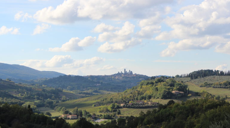 Oggi percorrerete uno dei tratti più noti della Via Francigena, quello che attraversa uno dei borghi medievali toscani più emblematici: San Gimignano. Da Gambassi Terme percorrerete inizialmente un tratto in collina fino al Santuario delle Pancole; subito dopo, superate antiche pievi e ville circondate da pittoreschi vigneti, uliveti e cipressi, scorgerete all’orizzonte San Gimignano. Prendetevi un po‘ di tempo per esplorare questo romantico borgo conosciuto come la „città delle 100 torri“; in realtà le torri erano 72 e ora non ne rimane che una dozzina: le famiglie benestanti dell‘epoca erano spesso in competizione per realizzare quella più alta, ma le torri avevano anche una funzione difensiva, permettendo di sorvegliare il territorio per allertare gli abitanti in caso si avvicinassero dei nemici. Non perdete una piacevole passeggiata intorno alle sue imponenti mura prima di proseguire lungo la Via Francigena fino al bellissimo agriturismo in cui soggiornerete; per raggiungerlo potrete scegliere tra due percorsi: uno lungo il convento di Monte Oliveto, situato su un ampio crinale, che poi scende lungo un piccolo ruscello che si attraversa prima di salire all’agriturismo; in alternativa potrete seguire un bellissimo percorso attraverso distese di vigneti. Assicuratevi di arrivare in tempo per godere appieno della favolosa ambientazione del vostro alloggio, e perché no, anche della sua biblioteca o della piscina. Cena inclusa presso il ristorante privato.