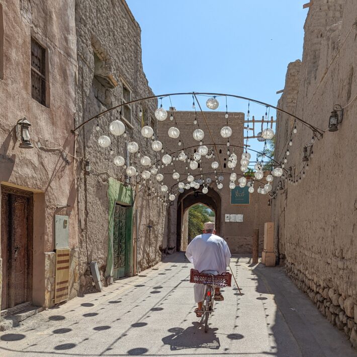 Dopo colazione viaggerete verso Al Hamra, un antico villaggio che il governo ha deciso di restaurare per mostrare come vivevano gli omaniti nei secoli passati. Pedalerete poi verso Al Misfah, un villaggio che attrae molti turisti e riconosciuto dall’Organizzazione Mondiale del Turismo come uno dei migliori villaggi del 2021 grazie alla sua caratteristica architettura e agricoltura. Concluderete la giornata all’hotel Shortfat Al Ameen a Bilad Sait, dove potrete anche cenare.