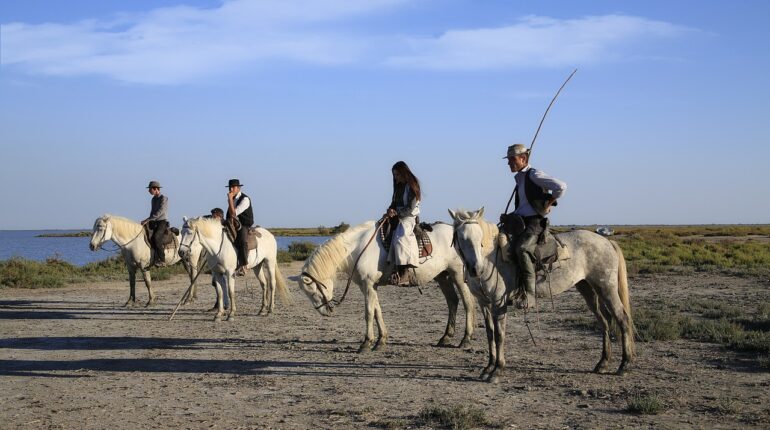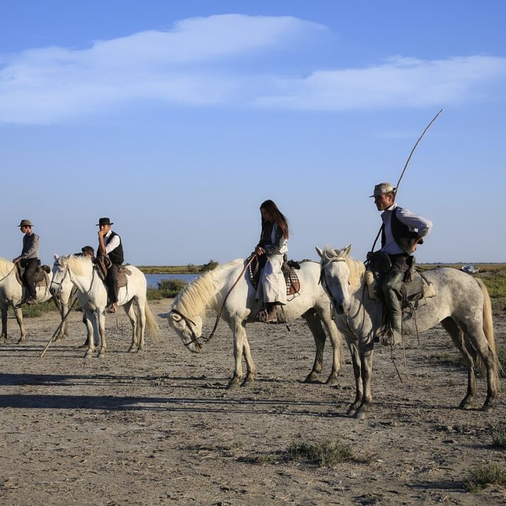 Oggi pedalerete in direzione di un altro luogo magico, il tipico paesaggio della Camargue, una regione dove la natura è ancora selvaggia e l‘anima gitana! Allontanandovi lentamente dalle colline dell‘entroterra raggiungerete la pianura disseminata di paludi, lagune e risaie, distese di sabbia e riserve naturali. Attraversando il Rodano in barca arriverete a Les Saintes Maries de la Mer dove trascorrerete 2 notti. Respirate l‘aria salmastra di questa cittadina così accogliente e perdetevi tra vicoli colorati tra cui spiccano le bianche case in calce. Hotel con piscina.