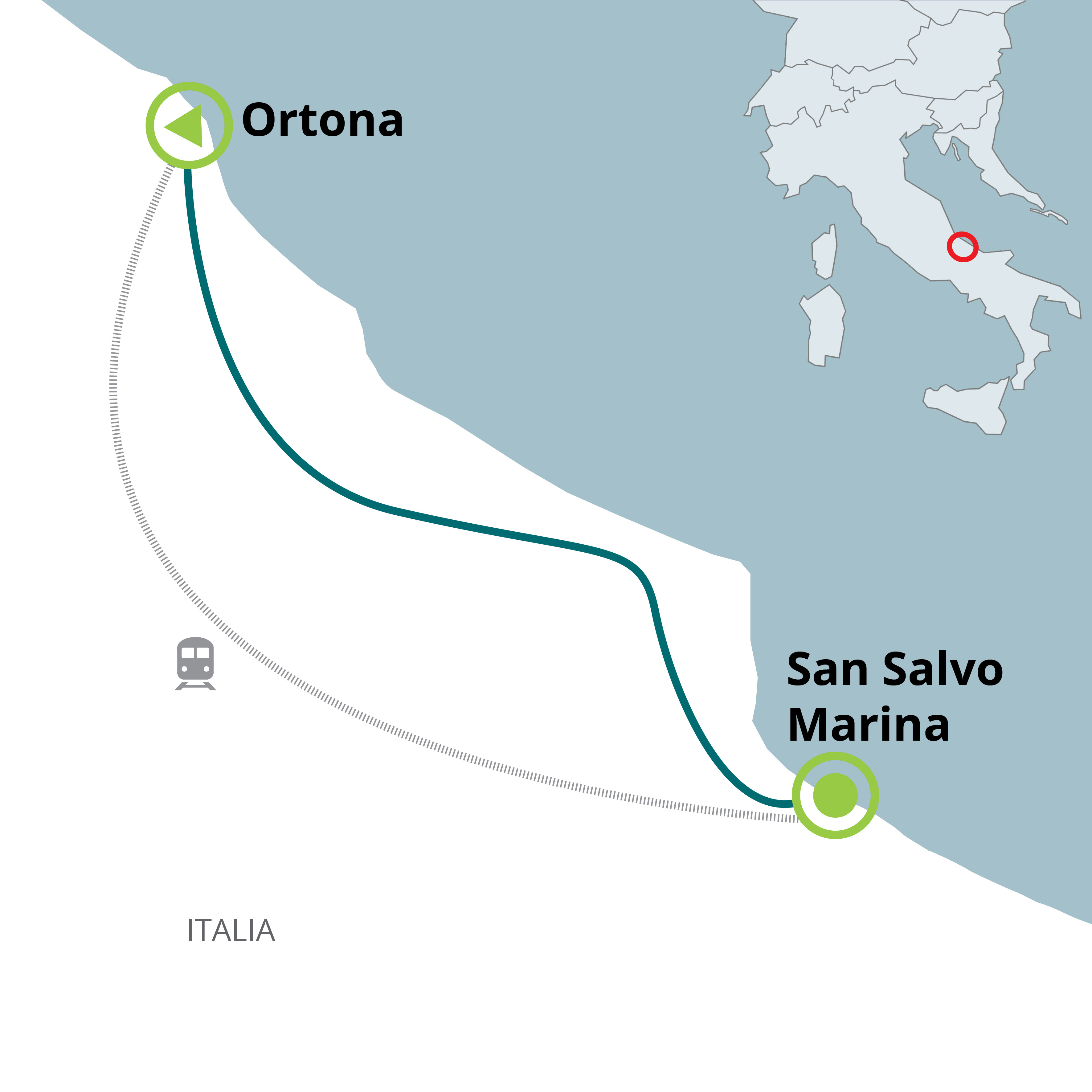 abbraccia la suggestiva Costa dei Trabocchi. Un viaggio pedalando attraverso riserve naturali e tesori culturali, accompagnati dal dolce rumore del mare, regalando uno spettacolo autentico e coinvolgente. Il percorso, alternando tratti ciclabili a tratti stradali, offre una varietà straordinaria di paesaggi, borghi marinari e dolci colline, rendendo l’esperienza unica del Bike to Coast da vivere appieno su due ruote Le tappe si sviluppano lungo tratti ciclabile alternati a strade secondarie. Adatto a ragazzi da 14 anni!