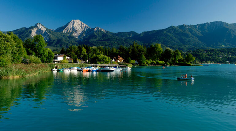 Dalla valle della Drava oggi vi dirigete verso sud. La meta odierna è il lago Faaker See. È una gemma tra i laghi della Carinzia, non molto grande, ma molto caldo e turchese come i Caraibi. Lungo il percorso attraversate tipici villaggi carinziani e passate nuovamente per Villach. Una volta arrivati a destinazione, potete rinfrescarvi con un bagno nel lago.