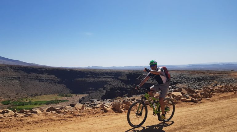 La pista oggi si inerpicherà a oltre 2.000 mt di quota attraverso scenari indimenticabili; scopriremo villaggi fuori dal tempo, con una dimensione lontana anni luce dai nostri stili di vita, immagini che rimarranno indelebili nei nostri cuori. Questa bella e sconosciuta pista raggiunge autentici villaggi di montagna e ci porterà dall’altro versante del Bab n’Ali (la porta di Alì) dove magici pinnacoli derivanti da antichi vulcani erosi dalle intemperie faranno da contrasto con i nostri sogni. Attraverseremo il Jebel Sarhro, massiccio vulcanico che, dalle sue alte cime, continuerà a farci sognare con le sue rocce laviche modellate a canne d’organo. Ci aspettano poi gli ultimi 70 km da fare sui mezzi dell’organizzazione per evitare di pedalare sul “noioso” asfalto. Raggiungeremo quindi Tinherir, rinomata per i laboratori orafi, gli edifici fortificati e il suo palazzo in rovina, cittadina caratterizzata da magnifici giardini e campicelli dove abbondano palme da dattero e fichi. Durante la serata i protagonisti saranno i vostri commenti entusiastici per i paesaggi che avrete goduto durante la giornata: ne siamo certi! Cena e pernottamento in Riad con vista sulle gole.